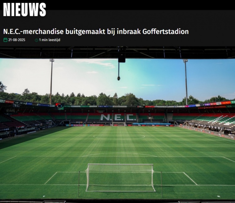 荷兰球队奈梅亨遭遇盗窃,损失至少15000欧元的周边商品&新球衣